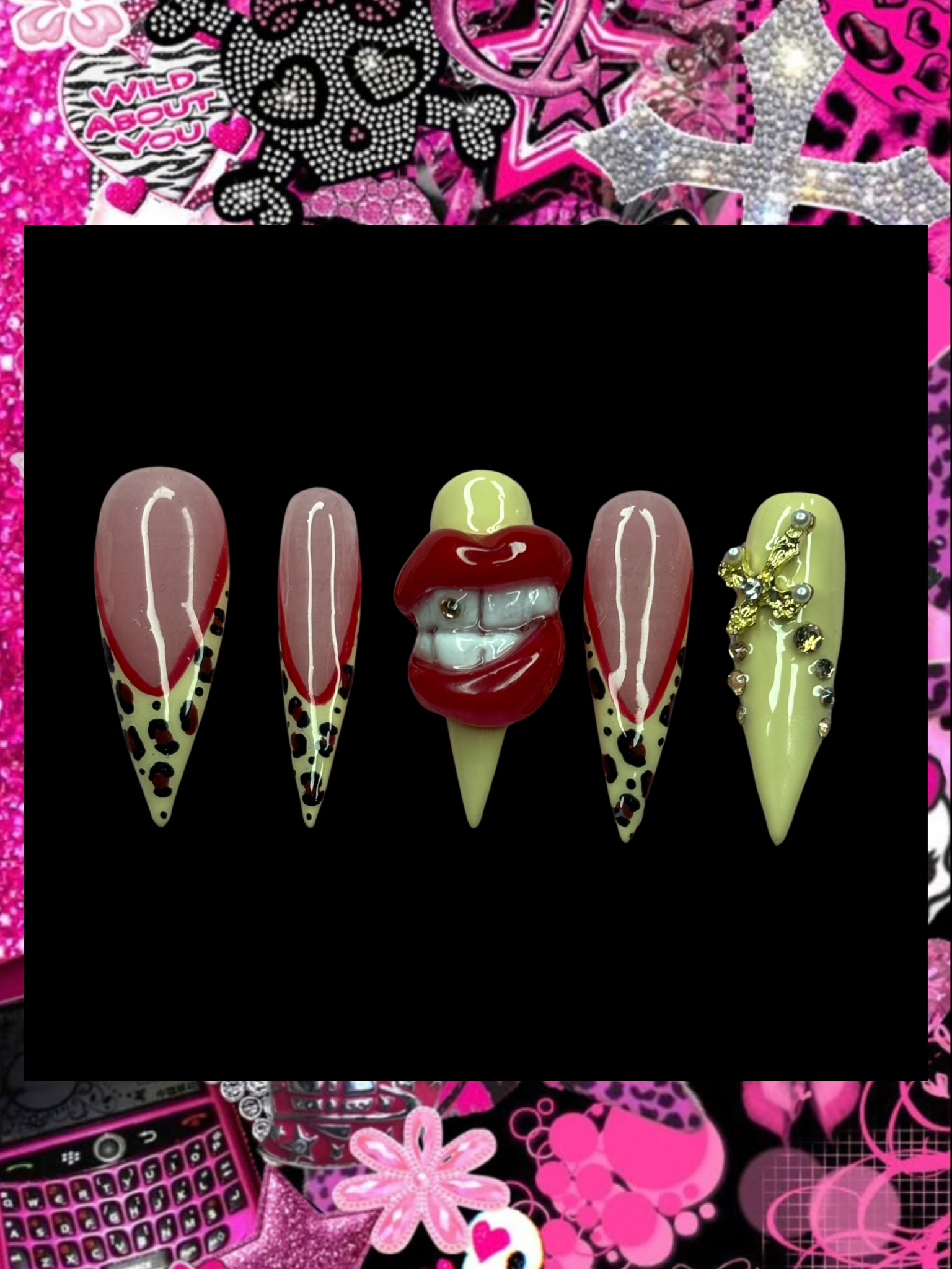 beige colored base with touches of red, leopard, & gold to spice it up! samantha jones inspired set